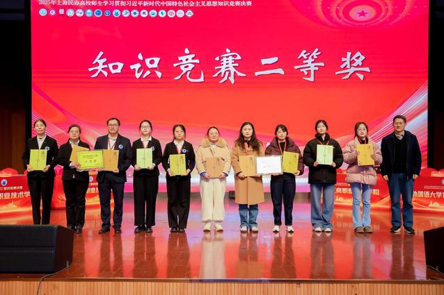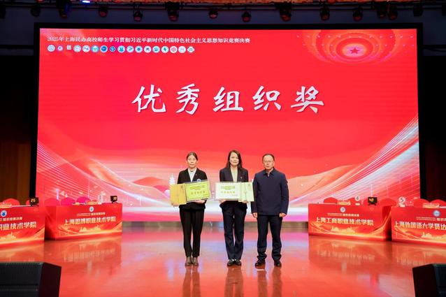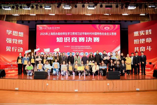 2025年11月28日,由中共上海市民办教育综合委员会指导的“学用新思想 建功新时代”2025年上海民办高校师生学习贯彻习近平新时代中国特色社会主义思想知识竞赛决赛,在上海工商职业技术学院顺利落幕。上海师范大学天华学院马克思主义学院选派由思政课教师李源泉、华芸,健康学院健康与服务管理专业学生刘芮希、商学院财务管理专业学生虞婧怡等4人组成的参赛团队,依托扎实的理论储备、紧密的团队配合斩获竞赛二等奖。在同期开展的学习贯彻习近平新时代中国特色社会主义思想主题案例征集活动中,马克思主义学院教师表现突出,荣获案例一等奖1项、二等奖4项、三等奖2项。同时,学校马克思主义学院荣获该项活动的优秀组织奖,充分彰显了学校思政教育工作的丰硕成果与师生昂扬向上的精神风采。