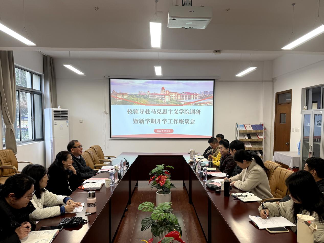 为深入学习贯彻党的二十届四中全会精神,扎实推进马克思主义学院高质量发展,3月5日下午,校党委书记高建华,党委副书记、校长龚春蕾一行赴马克思主义学院开展调研指导工作,深入了解学院新学期发展思路,倾听一线教师心声。马克思主义学院党政班子成员、专任教师、行政教辅人员共同参加调研座谈会。