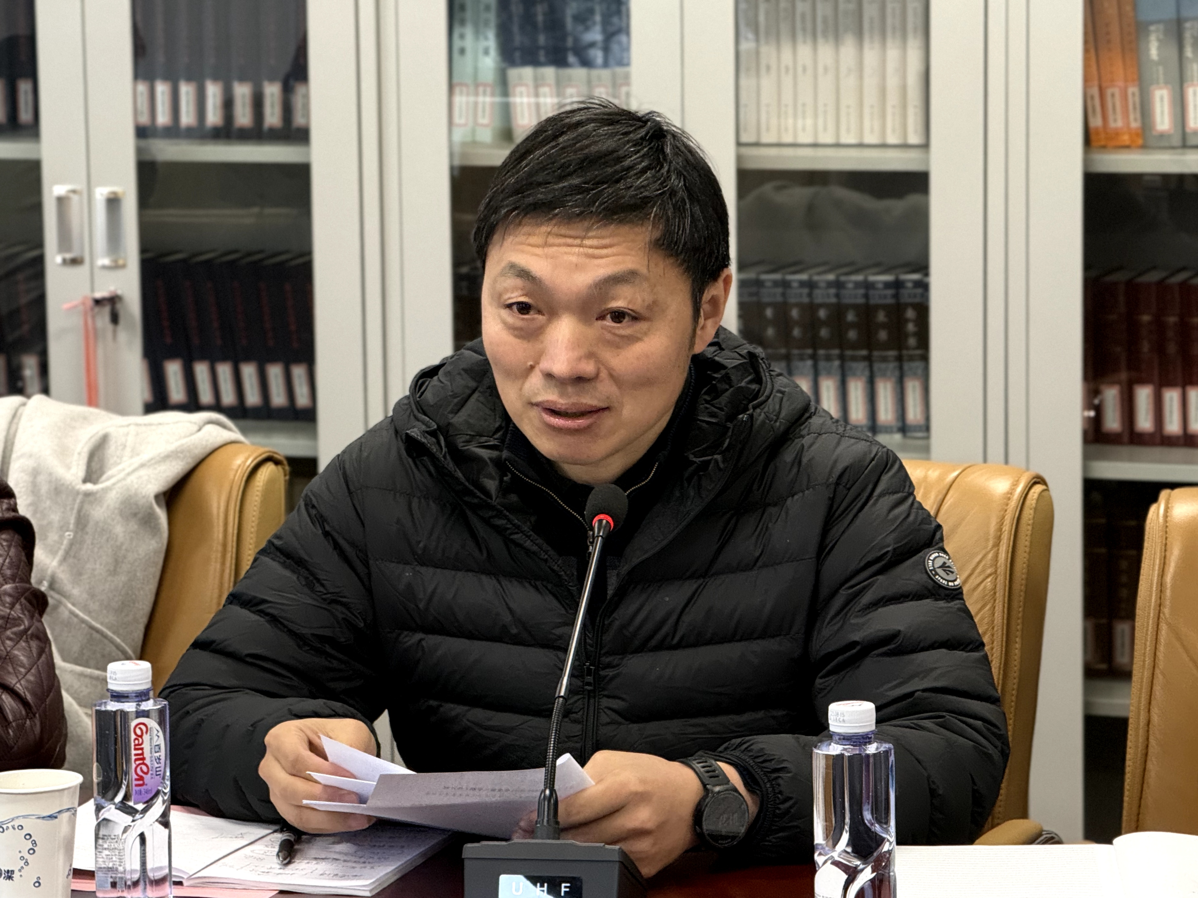 调研会上,马克思主义学院院长刘天翔以“科研深化与课程改革驱动马克思主义学院高质量发展”为主题,系统汇报了学院2025-2026学年第二学期在立德树人、科研推进、教学改革、协同育人、“大思政课”建设等方面的整体规划及实施路径。刘院长聚焦学校及学院未来发展的重点难点,阐述了本学期马院以科研深化和课程改革为双轮驱动,全面推进“五位一体”高质量建设发展的“5+1”具体实施路径,以量化考核体系为保障机制,形成目标明确、路径清晰、协同推进的发展格局。马院将持续深化内涵建设,不断提升教育教学质量与实效。